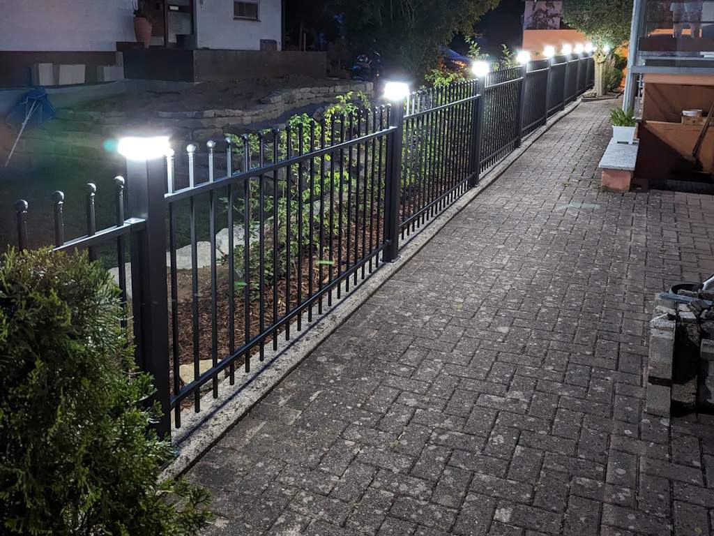 Das Zaunsystem „Agat“ kann um eine reiche Zusatzausstattung, z.B. LED-Pfostenkappen oder das Centerbox-Modul erweitert werden.