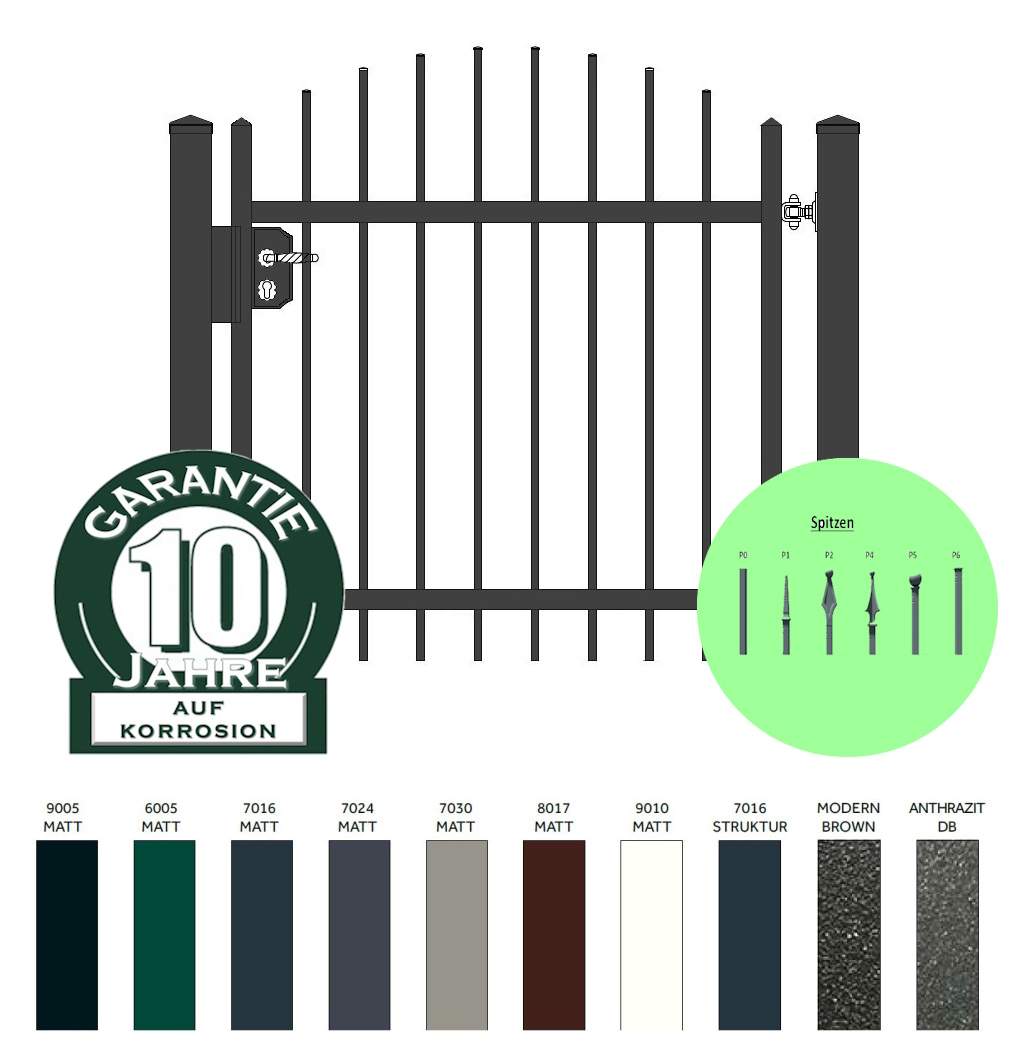 • Torhöhe: 80 cm / 90 cm / 100 cm / 110 cm / 120 cm / 130 cm / 140 cm / 150 cm / 160 cm / 170 cm / 180 cm / 190 cm / 200 cm Höhe wählbar (jeweils an der höchsten Stelle, an den Seiten ca. 15 cm niedriger)