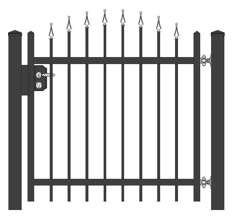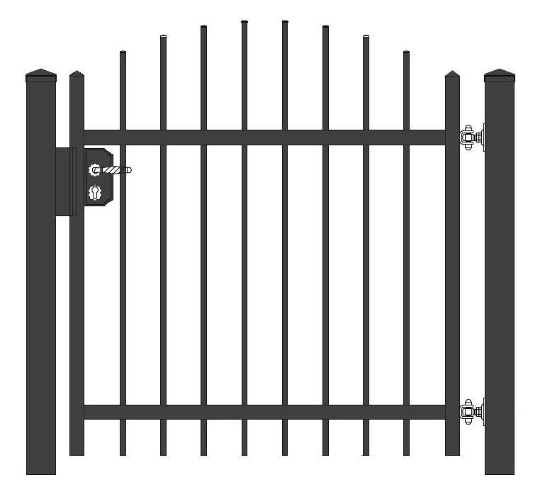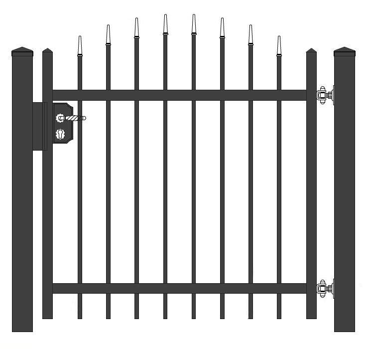 mit elektr. Türöffner: inkl. 2 Pfosten, elektrischer Türöffner (Summer), Scharniere, Schließblech, Knaufe, LOCINOX-Schloss, Schließzylinder und Schlüssel