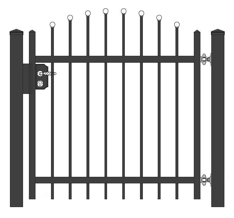 • passende Pfosten mit Fußplatte zum Aufschrauben bzw. Montageleisten / Scharniere zur Befestigung an Betonpfosten / Mauersäulen gern auf Anfrage