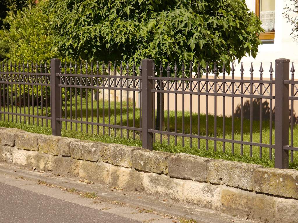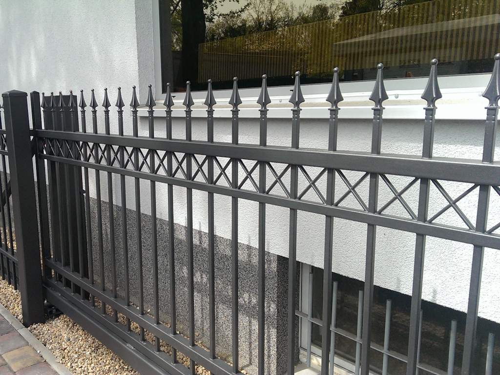 Das Zaunsystem „Jantar“ im klassischen Design hat einen charakteristischen Streifen, der durch kleine Zierelemente in Form von Kreuzmustern verziert ist. Stilvolles Design mit der Möglichkeit der Individualisierung durch verschiedene Zierspitzen machen es zu einer idealen Lösung für klassische Bauformen. Als Alternative kann das Modell auch mit Bogen geliefert werden.