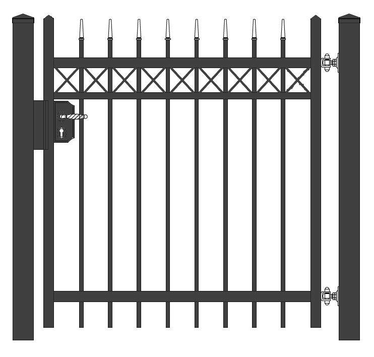ohne elektr. Türöffner: inkl. 2 Pfosten, Scharnieren, Schließblech, Klinken, LOCINOX-Schloss, Schließzylinder und Schlüssel