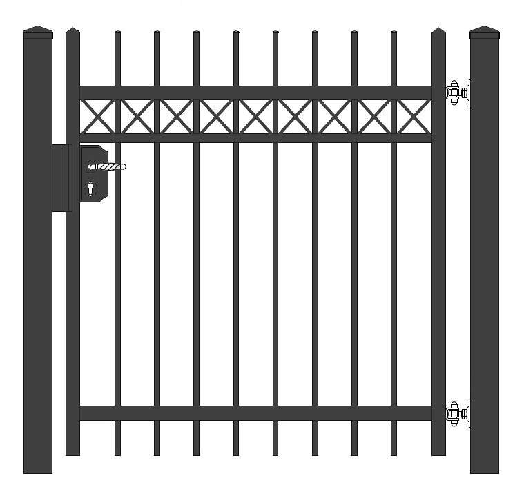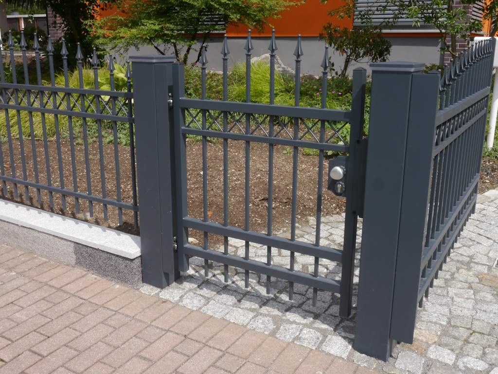 mit elektr. Türöffner: inkl. 2 Pfosten, elektrischer Türöffner (Summer), Scharniere, Schließblech, Knaufe, LOCINOX-Schloss, Schließzylinder und Schlüssel