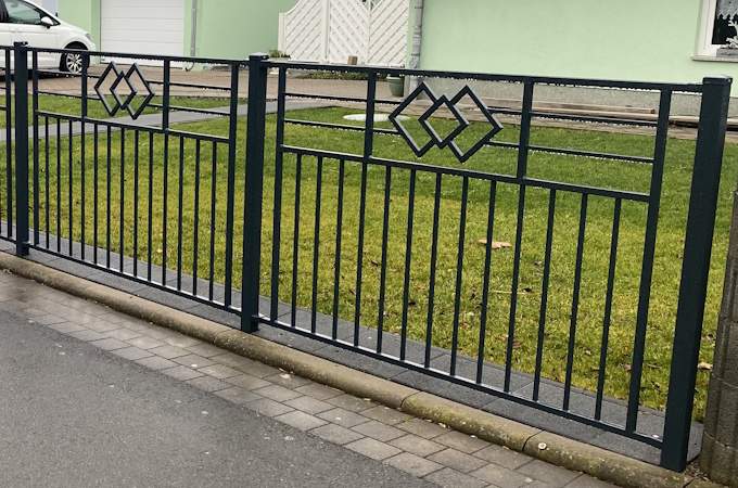 Das Zaunsystem „Jantar“ im klassischen Design hat einen charakteristischen Streifen, der durch kleine Zierelemente in Form von Kreuzmustern verziert ist. Stilvolles Design mit der Möglichkeit der Individualisierung durch verschiedene Zierspitzen machen es zu einer idealen Lösung für klassische Bauformen. Als Alternative kann das Modell auch mit Bogen geliefert werden.