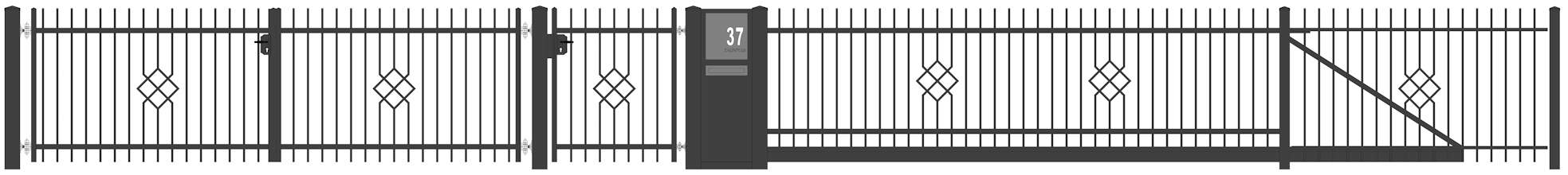 Dieses Modell kann in Höhe und Breite individuell auf Maß gefertigt werden. Die Schiebetore sind freitragend und können mit hochwertigem, im Führungspfosten integriertem Antrieb und LED-Warnleuchte ausgestattet werden.