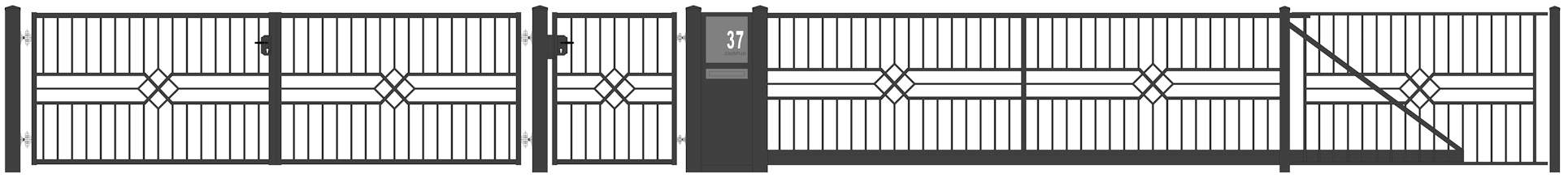 Dieses Modell kann in Höhe und Breite individuell nach Ihren Bedürfnissen auf Maß gefertigt werden. Die Schiebetore sind freitragend und können mit im Führungspfosten integriertem Antrieb und LED-Warnleuchte ausgestattet werden.